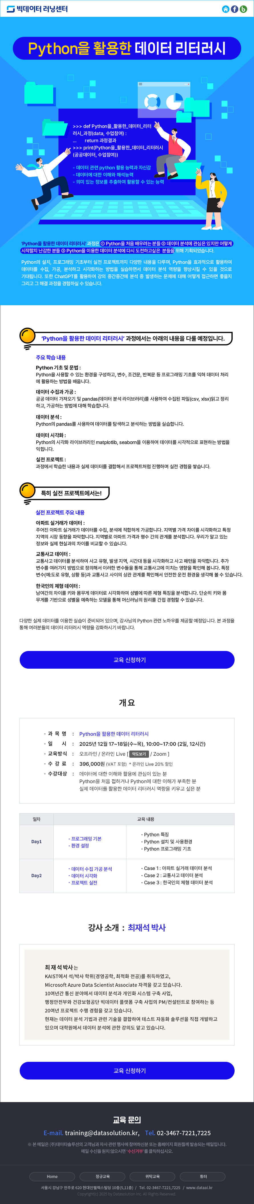 실전 프로젝트로 완성하는 'Python을 활용한 데이터 리터러시' (12/17~18) 교육 (AD)