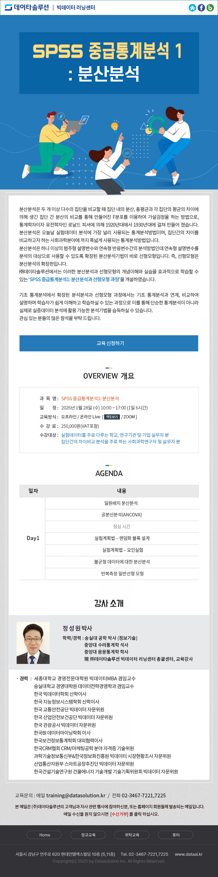 원리와 해석을 체계적으로 익히는 'SPSS 중급통계분석1: 분산분석' (1/28) 교육 (AD)