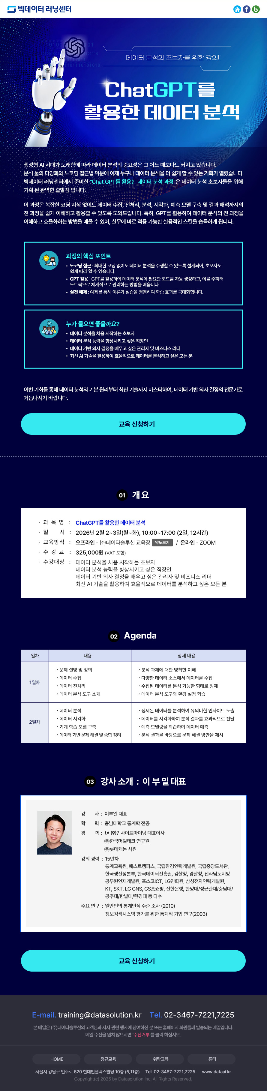 생성형 AI 기반 분석을 경험하는 'ChatGPT를 활용한 데이터분석' (2/2~3) 교육 (AD)