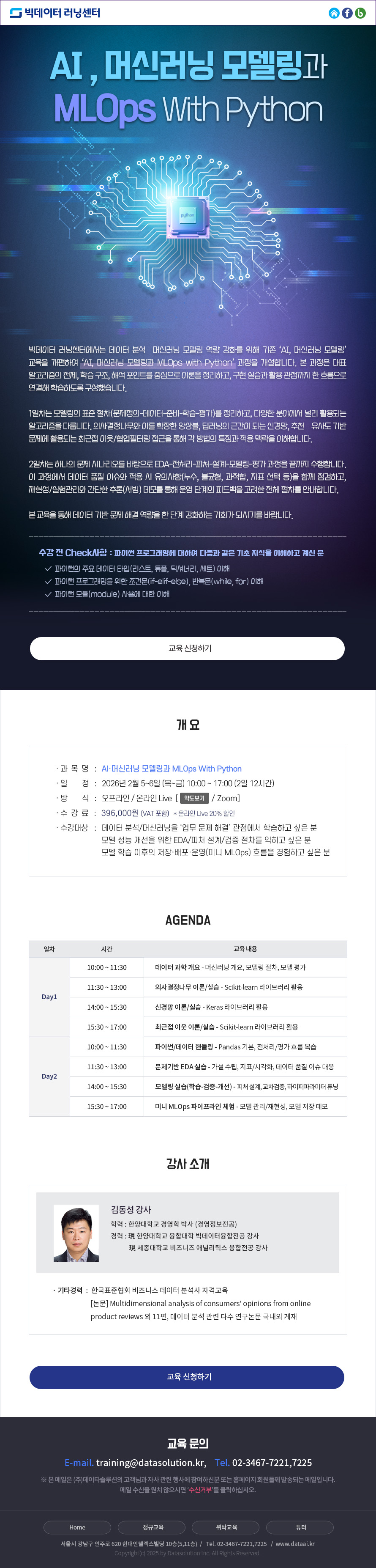 [과정 실전개편] 'AI·머신러닝 모델링과 MLOps With Python' (2/5~6) 교육 (AD)