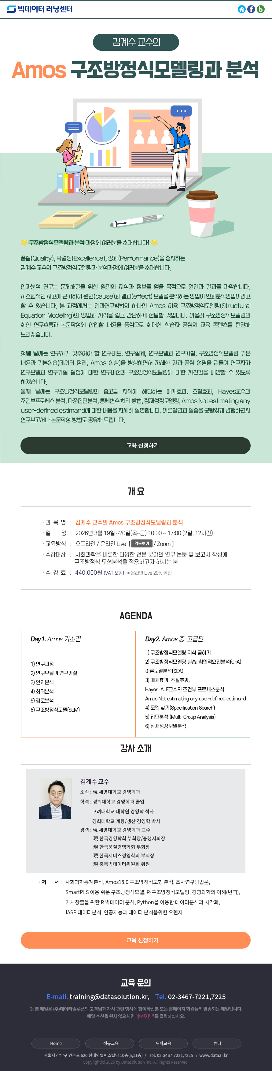 SEM의 핵심을 단계적으로 정리하는 '김계수 교수의 Amos 구조방정식모델링과 분석' (3/19~20) 교육 (AD)